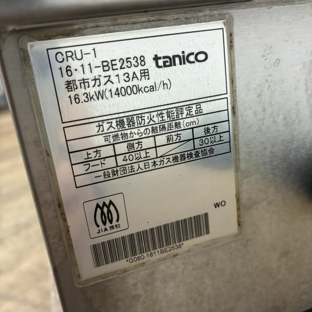 他の画像を見る 2016年製 タニコー 中華レンジ CR-120US 東京足立店 中古品 都市ガス 定価 ¥ 304,700 のところ 販売価格 ¥ 99,000 税込 W1200xD750xH750商品ランク:B カートに入れる お気に入りに登録する