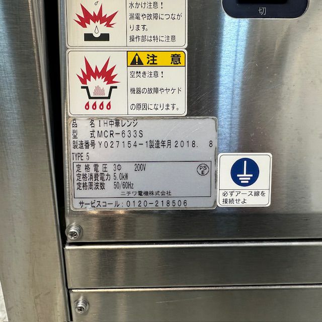 他の画像を見る 2018年製 ニチワ IH中華レンジ MCR-633S 東京足立店 中古品 三相200V 販売価格 ¥ 253,000 税込 W600xD750xH750商品ランク:B カートに入れる お気に入りに登録する
