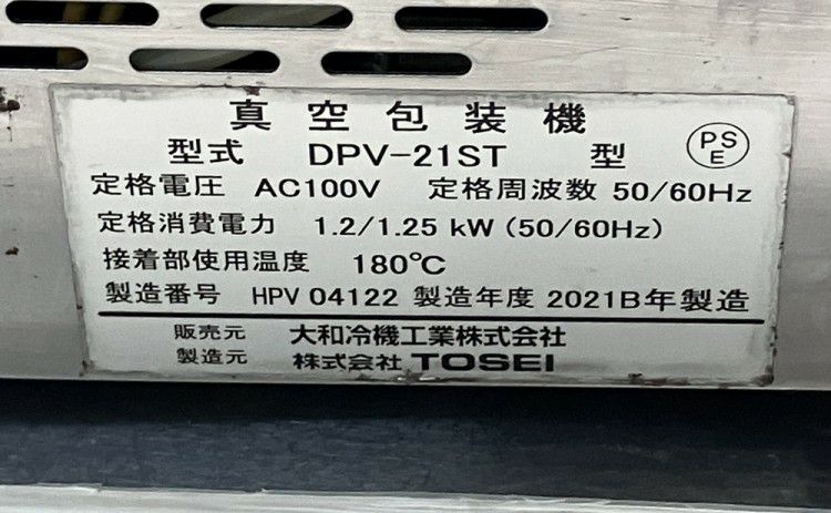 他の画像を見る 2021年製 大和冷機 真空包装機 DPV-21ST 東京町田店 中古品 単相100V 販売価格 ¥ 264,000 税込 W318xD456xH375商品ランク:B カートに入れる お気に入りに登録する
