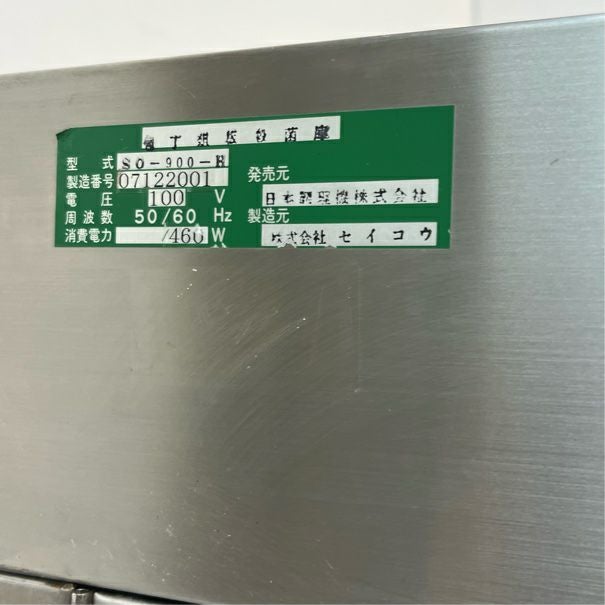 他の画像を見る 2007年製 株式会社セイコウ 包丁まな板殺菌庫 SO-900-H 東京足立店 中古品 単相100V 販売価格 ¥ 28,600 税込 W900xD600xH1800商品ランク:B カートに入れる お気に入りに登録する