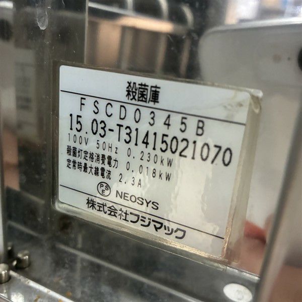 他の画像を見る 2015年製 フジマック 包丁まな板殺菌庫 FSCD0345B 大阪店 中古品 単相100V 販売価格 ¥ 71,500 税込 W300xD450xH1550商品ランク:B カートに入れる お気に入りに登録する