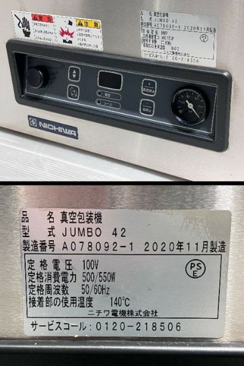 他の画像を見る 2020年製 ニチワ 真空包装機 JUMBO42 東京町田店 中古品 単相100V 販売価格 ¥ 220,000 税込 W480xD520xH440商品ランク:A カートに入れる お気に入りに登録する