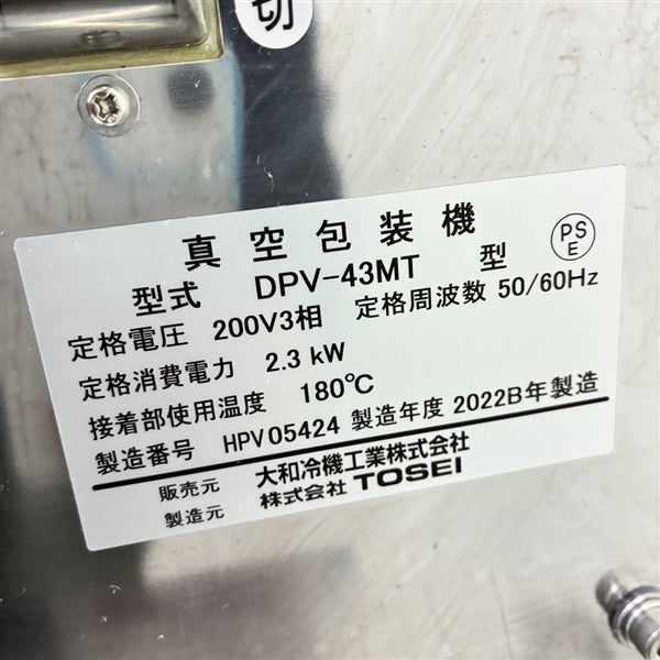 他の画像を見る 2024年製 大和冷機 真空包装機 DPV-43MT 大阪店 中古品 三相200V 定価 ¥ 1,346,400 のところ 販売価格 ¥ 495,000 税込 SOLD OUT W540xD740xH470商品ランク:A 詳細を見る お気に入りに登録する