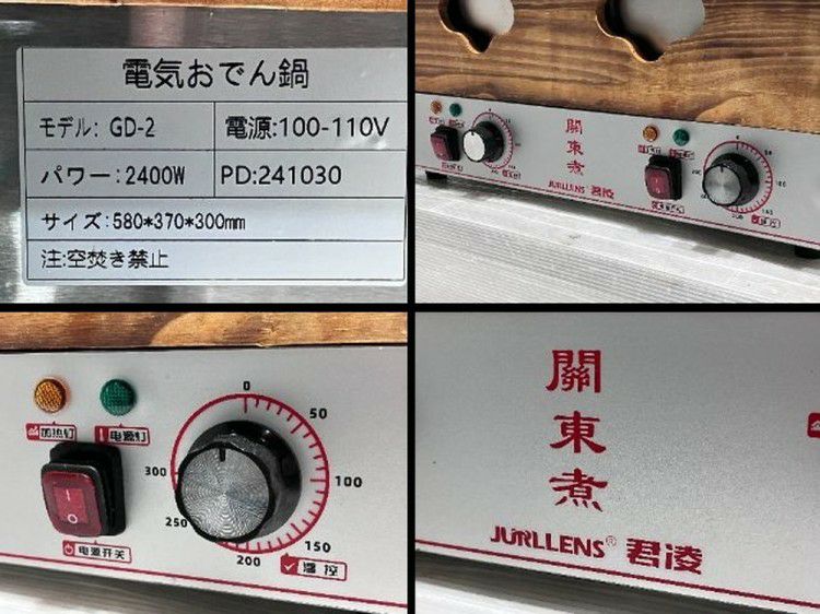 他の画像を見る JURLLENS 君凌 おでん鍋 GD-2 ※備考欄必読 東京町田店 中古品 単相100V 販売価格 ¥ 16,500 税込 W560xD350xH455商品ランク:B カートに入れる お気に入りに登録する
