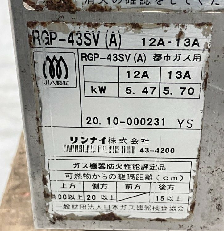 他の画像を見る 2020年製 リンナイ ガス上火式グリラー RGP-43SV(A) 東京町田店 中古品 都市ガス 販売価格 ¥ 49,500 税込 W613xD425xH602商品ランク:C カートに入れる お気に入りに登録する