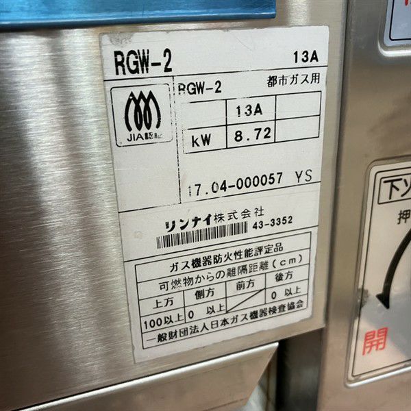 他の画像を見る 2022年製 リンナイ ガス赤外線グリラー RGW-2 大阪店 中古品 都市ガス 定価 ¥ 204,490 のところ 販売価格 ¥ 99,000 税込 W620xD382xH586商品ランク:B カートに入れる お気に入りに登録する