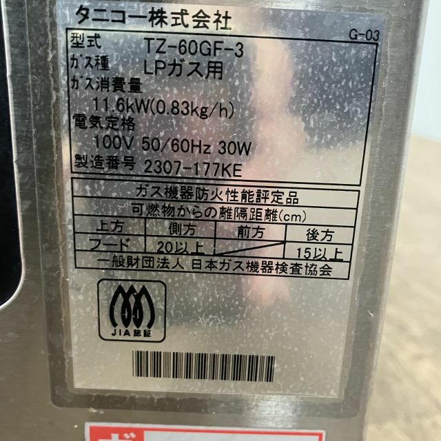 他の画像を見る 2023年製 タニコー 自動ガス餃子焼き器 TZ-60GF-3 大阪店 中古品 単相100V プロパンガス 定価 ¥ 770,000 のところ 販売価格 ¥ 324,500 税込 SOLD OUT W600xD650xH340商品ランク:B 詳細を見る お気に入りに登録する
