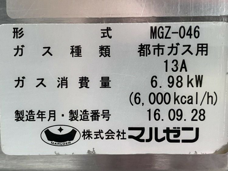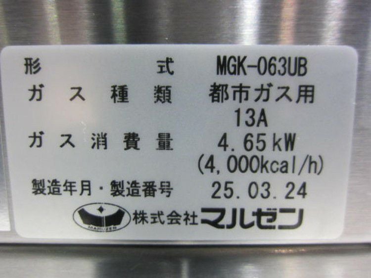 他の画像を見る 2025年製 マルゼン ガス上火式焼物器 スピードグリラー MGK-063UB 東京町田店 中古品 都市ガス 販売価格 ¥ 34,650 税込 SOLD OUT W610xD300xH420商品ランク:A 詳細を見る お気に入りに登録する