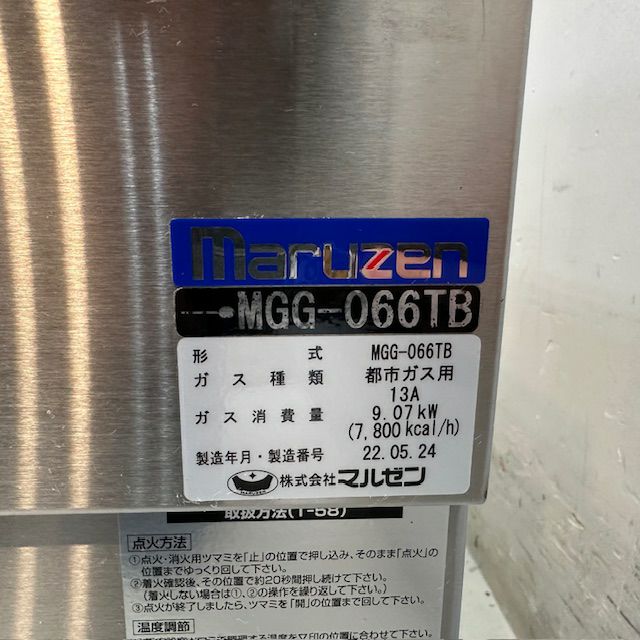 他の画像を見る 2016年製 マルゼン ガスグリドル MGG-126TB 愛知店 中古品 プロパンガス 定価 ¥ 481,800 のところ 販売価格 ¥ 121,000 税込 SOLD OUT W1200xD600xH300+150商品ランク:B 詳細を見る お気に入りに登録する