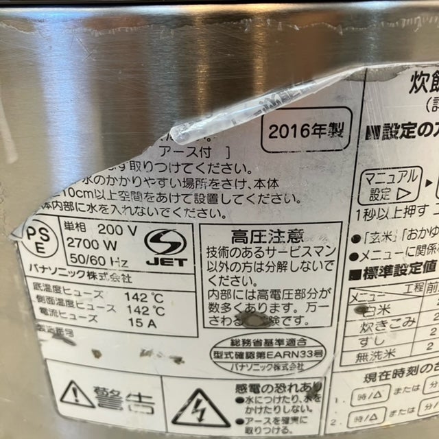 他の画像を見る 2015年製 パナソニック 業務用IH炊飯ジャー SR-PGB36P 東京足立店 中古品 単相200V 販売価格 ¥ 27,500 税込 W502xD429xH344商品ランク:B カートに入れる お気に入りに登録する