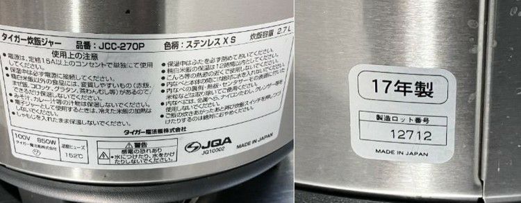 他の画像を見る 2017年製 タイガー IH炊飯ジャー JCC-270P 東京町田店 中古品 単相100V 販売価格 ¥ 12,100 税込 SOLD OUT W378xD330xH352商品ランク:B 詳細を見る お気に入りに登録する