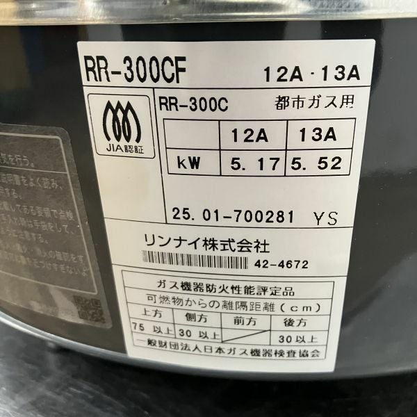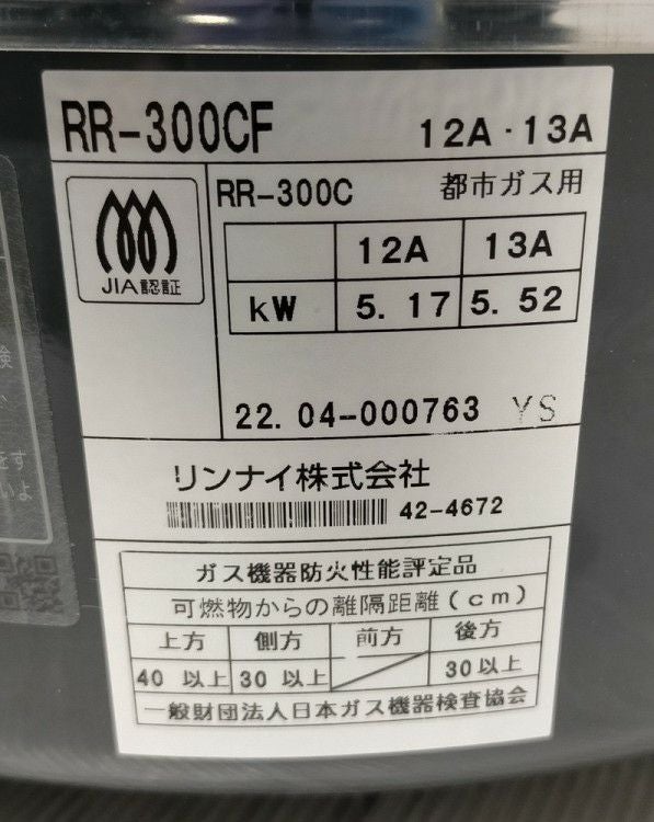 他の画像を見る 2022年製 リンナイ ガス炊飯器 RR-300CF 東京町田店 中古品 都市ガス 定価 ¥ 79,200 のところ 販売価格 ¥ 29,700 税込 SOLD OUT W492xD423xH426商品ランク:B 詳細を見る お気に入りに登録する