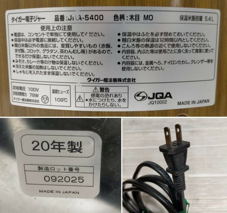 他の画像を見る 2022年製 タイガー 電子保温ジャー JHA-400A 東京町田店 中古品 単相100V 販売価格 ¥ 16,500 税込 SOLD OUT W435xD358xH270商品ランク:B 詳細を見る お気に入りに登録する