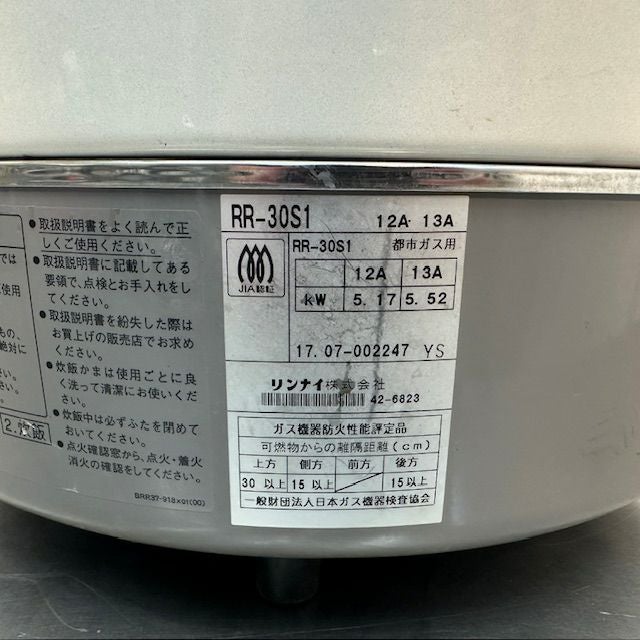 他の画像を見る 2013年製 リンナイ ガス炊飯器 RR-30S1 東京足立店 中古品 都市ガス 定価 ¥ 40,260 のところ 販売価格 ¥ 11,000 税込 SOLD OUT W450xD421xH425商品ランク:B 詳細を見る お気に入りに登録する