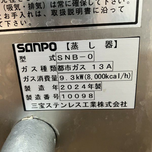 他の画像を見る 2024年製 三宝ステンレス ガス蒸し器 セイロタイプ SNB-0 大阪店 中古品 都市ガス 定価 ¥ 352,000 のところ 販売価格 ¥ 88,000 税込 W515xD554xH650商品ランク:B カートに入れる お気に入りに登録する