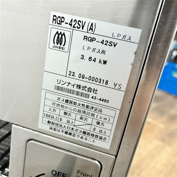 他の画像を見る 2023年製 リンナイ ガス上火式グリラー RGP-42SV 大阪店 中古品 プロパンガス 定価 ¥ 72,358 のところ 販売価格 ¥ 33,000 税込 W500xD310xH395商品ランク:B カートに入れる お気に入りに登録する