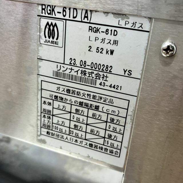 他の画像を見る 2017年製 リンナイ ガス上火式グリラー RGP-62SV 大阪店 中古品 都市ガス 定価 ¥ 80,630 のところ 販売価格 ¥ 33,000 税込 W630xD310xH395商品ランク:B カートに入れる お気に入りに登録する
