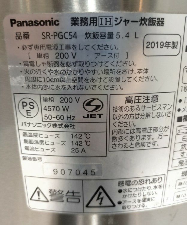 他の画像を見る 2019年製 パナソニック IH炊飯ジャー SR-PGC54 東京町田店 中古品 単相200V 販売価格 ¥ 66,000 税込 SOLD OUT W502xD429xH410商品ランク:B 詳細を見る お気に入りに登録する