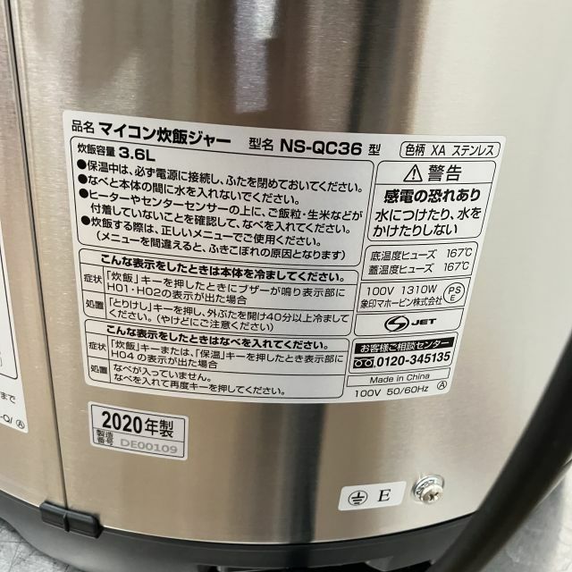 他の画像を見る 2020年製 象印 電気炊飯ジャー NS-QC36 大阪店 未使用品 単相100V 販売価格 ¥ 55,000 税込 W470xD385xH400商品ランク:AA カートに入れる お気に入りに登録する