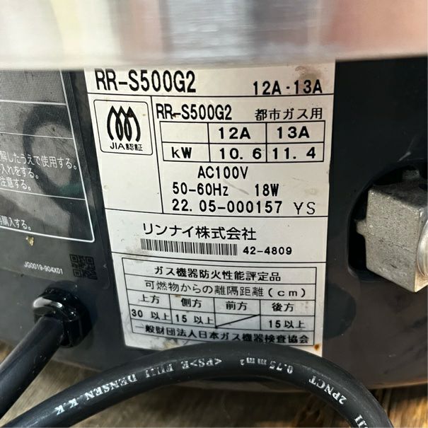 他の画像を見る 2014年製 リンナイ ガス炊飯器 RR-50S1 東京町田店 中古品 都市ガス 販売価格 ¥ 23,100 税込 W525xD481xH434商品ランク:B カートに入れる お気に入りに登録する