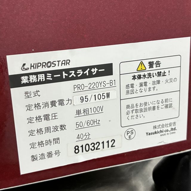 他の画像を見る 2021年製 キプロスター ミートスライサー PRO-220YS-B1 大阪店 中古品 単相100V 販売価格 ¥ 22,000 税込 W440xD390xH350商品ランク:B カートに入れる お気に入りに登録する