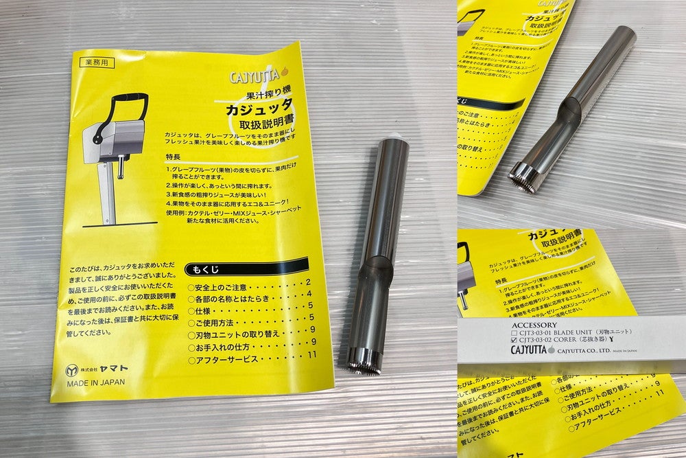 他の画像を見る 株式会社ヤマト 果汁搾り機カジュッタ CJT3-04 東京町田店 中古品 単相100V 販売価格 ¥ 143,000 税込 SOLD OUT W210xD297xH535商品ランク:A 詳細を見る お気に入りに登録する