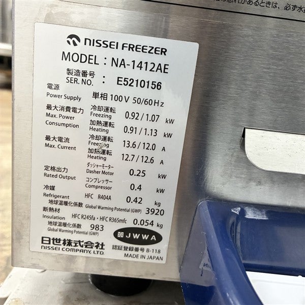 他の画像を見る 2021年製 日世 ソフトクリームサーバー NA-1412AE 大阪店 中古品 単相100V 販売価格 ¥ 473,000 税込 W378xD612xH762商品ランク:B カートに入れる お気に入りに登録する