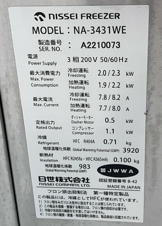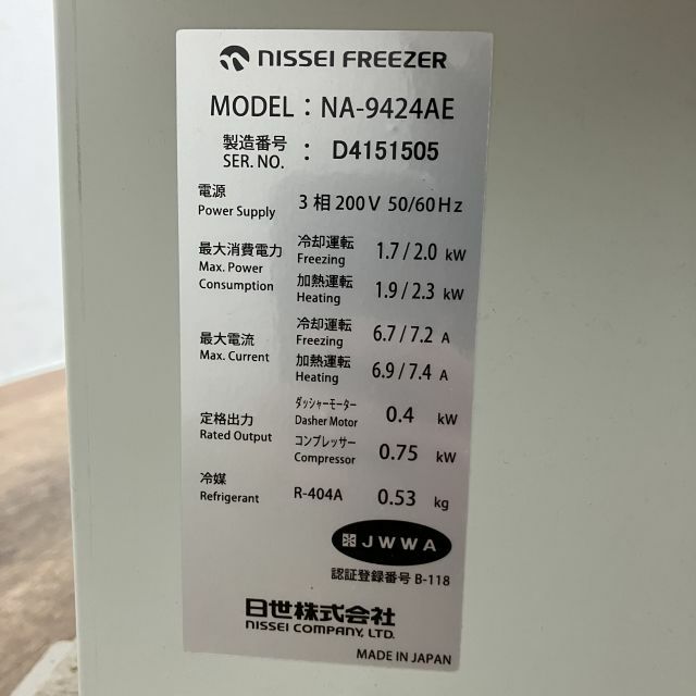 他の画像を見る 2016年製 日世 ソフトクリームサーバー NA-9424AE 大阪店 中古品 三相200V 販売価格 ¥ 363,000 税込 W298xD739xH924商品ランク:B カートに入れる お気に入りに登録する
