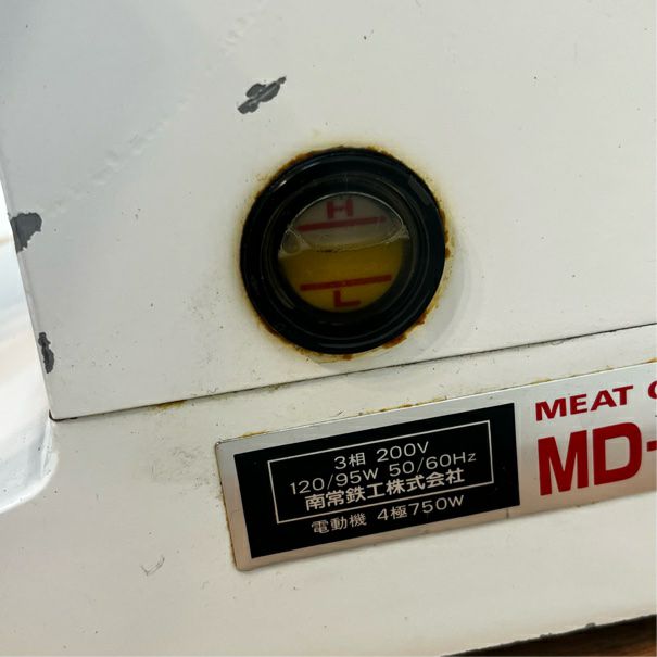 他の画像を見る 2001年製 なんつね ミートチョッパー MD-22K 東京足立店 中古品 三相200V 販売価格 ¥ 70,400 税込 SOLD OUT W245xD590xH440商品ランク:B 詳細を見る お気に入りに登録する