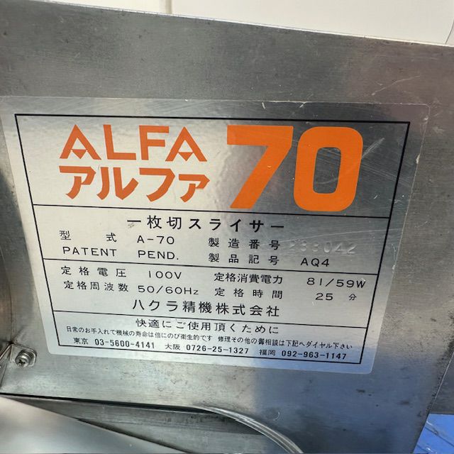 他の画像を見る ハクラ精機 一枚切パンスライサー A-70 東京足立店 中古品 単相100V 販売価格 ¥ 55,000 税込 SOLD OUT W520xD500xH300商品ランク:B 詳細を見る お気に入りに登録する