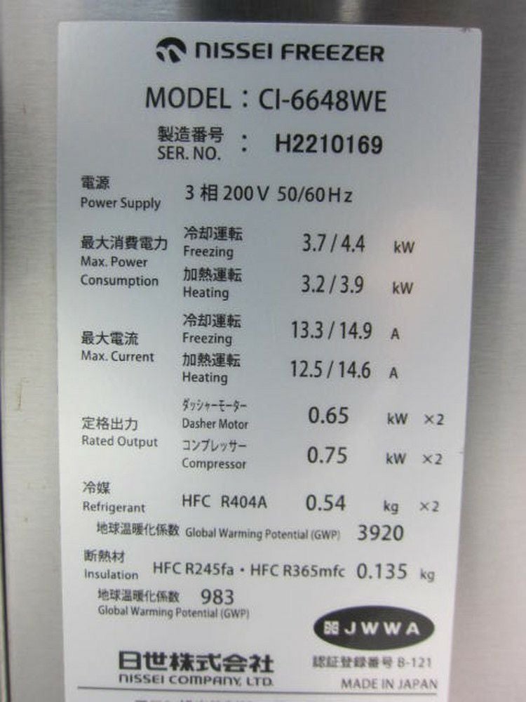 他の画像を見る 2023年製 日世 ソフトクリームサーバー CI-6748WT 愛知店 中古品 三相200V 販売価格 ¥ 1,100,000 税込 SOLD OUT W527xD768xH1512商品ランク:A 詳細を見る お気に入りに登録する
