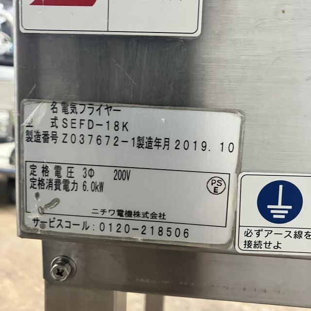 他の画像を見る 2019年製 ニチワ 電気フライヤー SEFD-18K 大阪店 中古品 三相200V 販売価格 ¥ 187,000 税込 W450xD600xH800商品ランク:B カートに入れる お気に入りに登録する