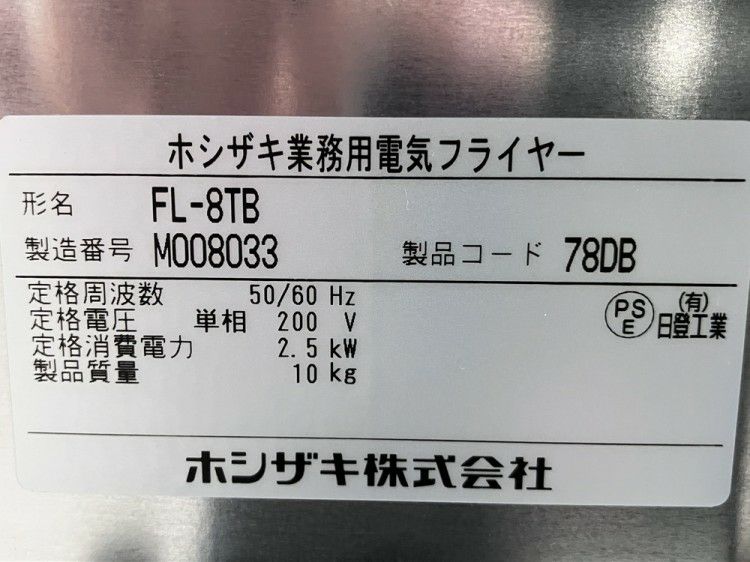 他の画像を見る 2022年製 ホシザキ 卓上電気フライヤー FL-8TB 東京町田店 中古品 単相200V 販売価格 ¥ 77,000 税込 SOLD OUT W265xD435xH370商品ランク:B 詳細を見る お気に入りに登録する