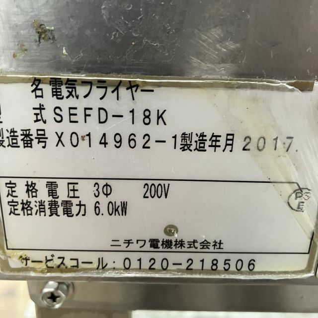 他の画像を見る 2017年製 ニチワ 電気フライヤー SEFD-18K ※備考欄必読 大阪店 中古品 三相200V 販売価格 ¥ 165,000 税込 W450xD600xH800商品ランク:B カートに入れる お気に入りに登録する