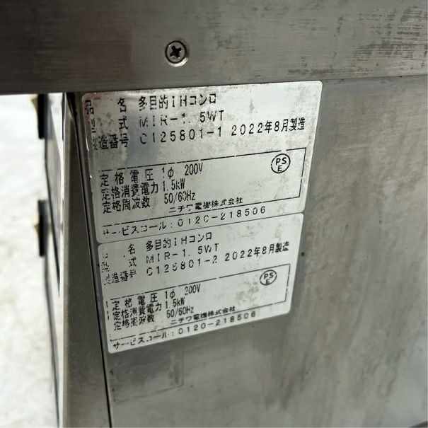 他の画像を見る 2022年製 ニチワ 2連IHコンロ MIR-1.5WT 東京足立店 中古品 単相200V 販売価格 ¥ 96,800 税込 W230xD600xH300商品ランク:A カートに入れる お気に入りに登録する