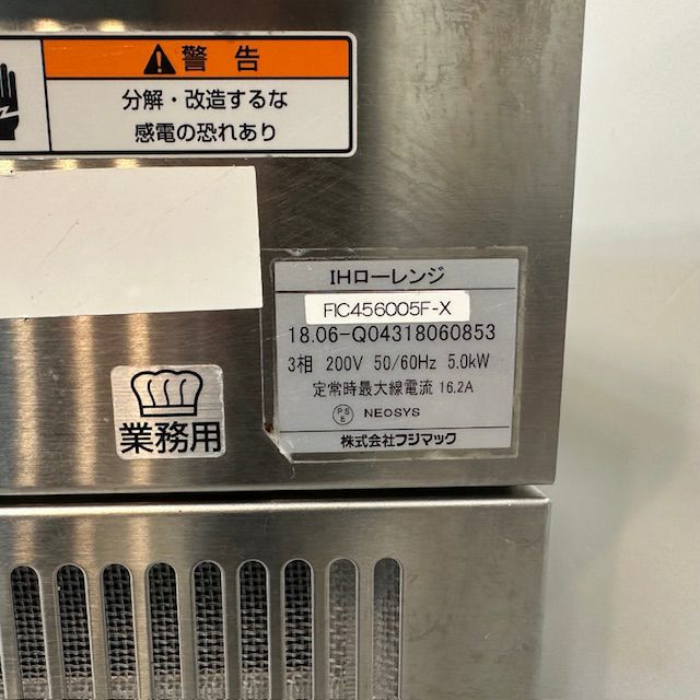 他の画像を見る 2018年製 フジマック IHローレンジ FIC456005F-X 東京足立店 中古品 三相200V 定価 ¥ 413,600 のところ 販売価格 ¥ 44,000 税込 W450xD600xH450商品ランク:B カートに入れる お気に入りに登録する