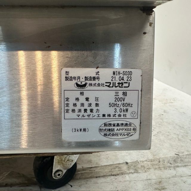 他の画像を見る 2019年製 マルゼン 卓上1口IHコンロ MIH-KP03B セール30%OFF 大阪店 中古品 三相200V 定価 ¥ 240,900 のところ 販売価格 ¥ 73,150 税込 通常価格¥"104500"のところ W450xD600xH170商品ランク:B カートに入れる お気に入りに登録する