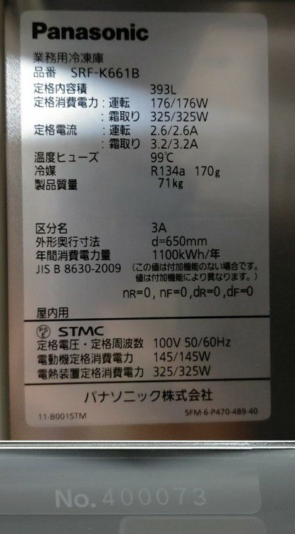 他の画像を見る 2024年製 パナソニック 縦型冷凍庫 SRF-K661B 東京町田店 中古品 単相100V 販売価格 ¥ 144,650 税込 W615xD650xH1950商品ランク:A カートに入れる お気に入りに登録する