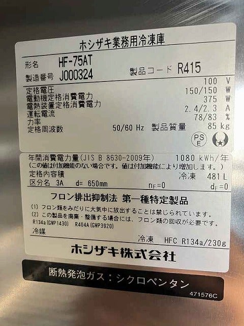 他の画像を見る 2021年製 ホシザキ 縦型冷凍冷蔵庫 HRF-75AT 東京町田店 中古品 単相100V 販売価格 ¥ 165,000 税込 W750xD650xH1910商品ランク:C カートに入れる お気に入りに登録する