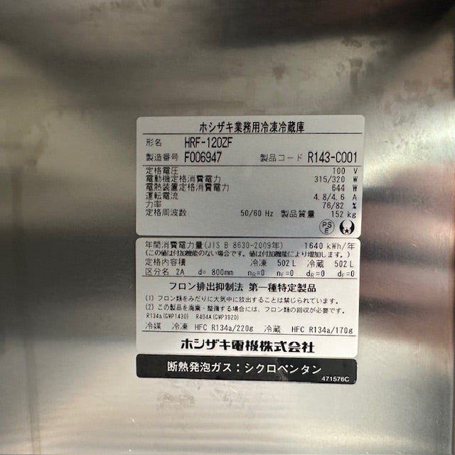 他の画像を見る 2016年製 ホシザキ 縦型冷凍冷蔵庫 HRF-120ZF 東京足立店 中古品 単相100V 定価 ¥ 1,502,600 のところ 販売価格 ¥ 110,000 税込 W1200xD800xH1890商品ランク:B カートに入れる お気に入りに登録する