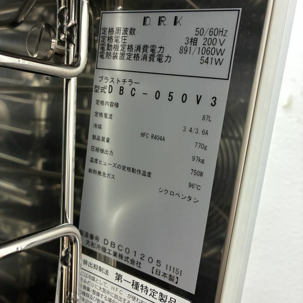 他の画像を見る 2022年製 大和冷機 ブラストチラー DBC-050V3 大阪店 中古品 三相200V 販売価格 ¥ 555,500 税込 W750xD600xH800商品ランク:B カートに入れる お気に入りに登録する