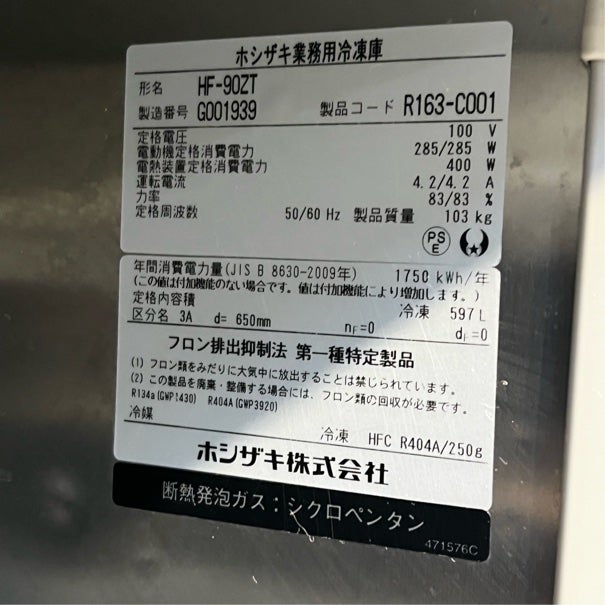 他の画像を見る 2017年製 ホシザキ 縦型冷凍庫 HF-90ZT 東京足立店 中古品 単相100V 定価 ¥ 1,255,100 のところ 販売価格 ¥ 117,700 税込 SOLD OUT W900xD650xH1890商品ランク:B 詳細を見る お気に入りに登録する