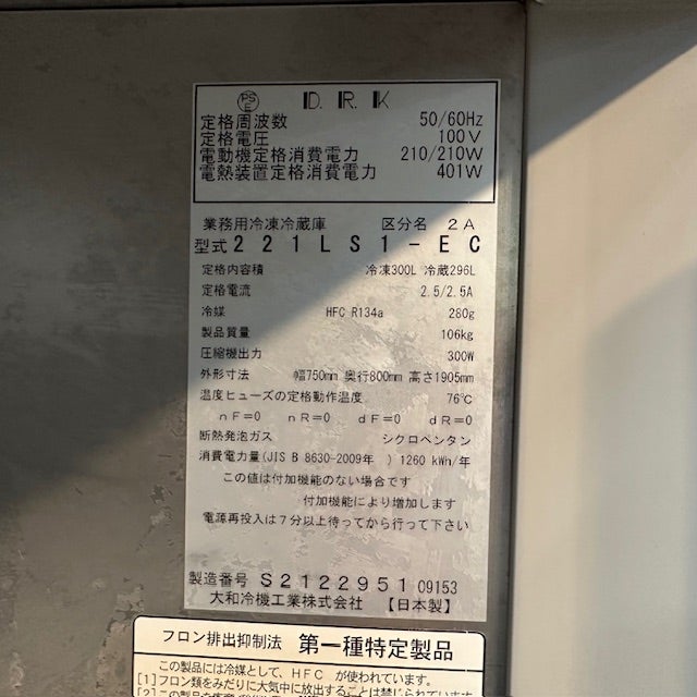 他の画像を見る 2023年製 大和冷機 縦型冷凍冷蔵庫 221LS1-EC 東京足立店 中古品 単相100V 販売価格 ¥ 154,000 税込 SOLD OUT W750xD800xH1905商品ランク:B 詳細を見る お気に入りに登録する