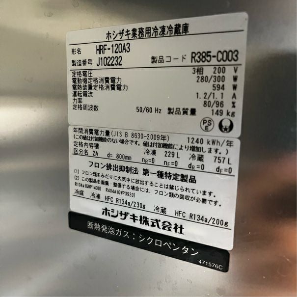 他の画像を見る 2017年製 ホシザキ 縦型冷凍冷蔵庫 HRF-120ZT3 東京足立店 中古品 三相200V 定価 ¥ 1,288,100 のところ 販売価格 ¥ 148,500 税込 SOLD OUT W1200xD650xH1890商品ランク:B 詳細を見る お気に入りに登録する