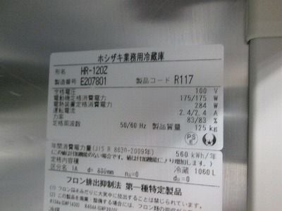 他の画像を見る 2015年製 ホシザキ 縦型冷蔵庫 HR-120Z 愛知店 中古品 単相100V 定価 ¥ 1,152,800 のところ 販売価格 ¥ 121,000 税込 SOLD OUT W1200xD800xH1890商品ランク:B 詳細を見る お気に入りに登録する