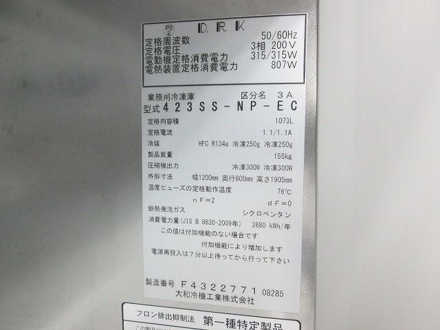 他の画像を見る 2015年製 大和冷機 縦型冷凍庫 423SS-NP-EC 愛知店 中古品 三相200V 定価 ¥ 1,475,100 のところ 販売価格 ¥ 114,400 税込 SOLD OUT W1200xD800xH1905商品ランク:B 詳細を見る お気に入りに登録する