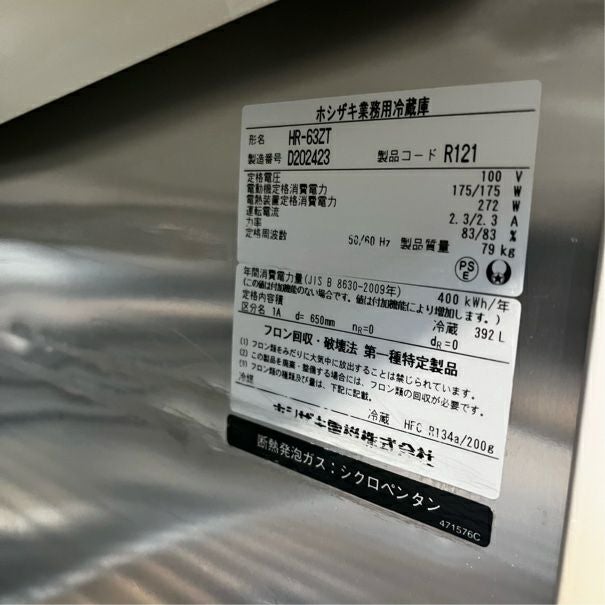 他の画像を見る 2014年製 ホシザキ 縦型冷蔵庫 HR-63ZT 東京足立店 中古品 単相100V 定価 ¥ 878,900 のところ 販売価格 ¥ 75,900 税込 SOLD OUT W625xD650xH1890商品ランク:B 詳細を見る お気に入りに登録する