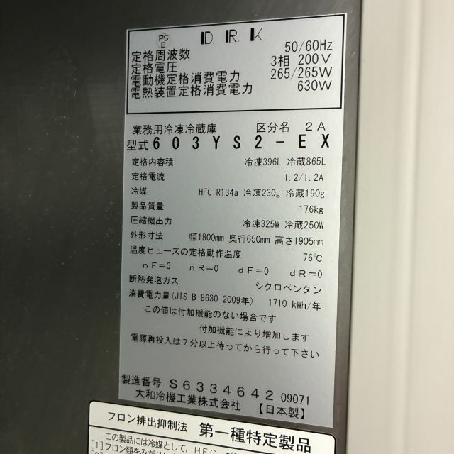 他の画像を見る 2021年製 大和冷機 縦型冷凍冷蔵庫 603YS2-EX 大阪店 中古品 三相200V 販売価格 ¥ 191,400 税込 SOLD OUT W1800xD650xH1905商品ランク:B 詳細を見る お気に入りに登録する