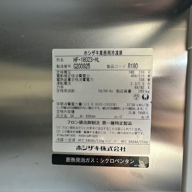 他の画像を見る 2017年製 ホシザキ 縦型冷凍庫 HF-180Z3-ML 東京足立店 中古品 三相200V 定価 ¥ 1,753,400 のところ 販売価格 ¥ 179,300 税込 SOLD OUT W1800xD800xH1890商品ランク:B 詳細を見る お気に入りに登録する