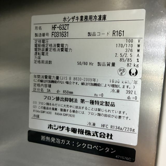 他の画像を見る 2016年製 ホシザキ 縦型冷凍庫 HF-63ZT 大阪店 中古品 単相100V 定価 ¥ 1,015,300 のところ 販売価格 ¥ 91,300 税込 SOLD OUT W625xD650xH1890商品ランク:B 詳細を見る お気に入りに登録する